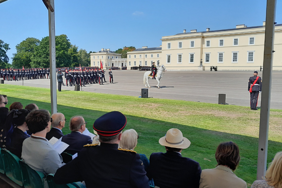 A particular highlight was the parade where over 500 students, band and horses practiced ahead of His Majesties representative taking the salute 48 hours later. This dovetailed in to Colour Sergeant Schurch’s excellent guided tour of the site, highlighting the career pathway and answering questions.